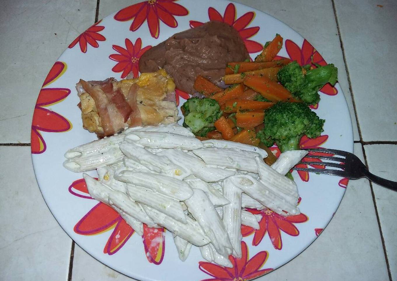 - Acompañe las pechugas rellenas con los vegetales, pasta alfredo y frijol refrito.