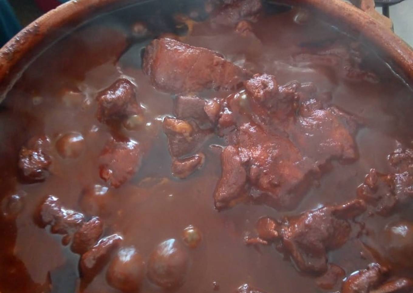 - En un olla de barro con tapa vacía la costilla y sellar en un poco de aceite.