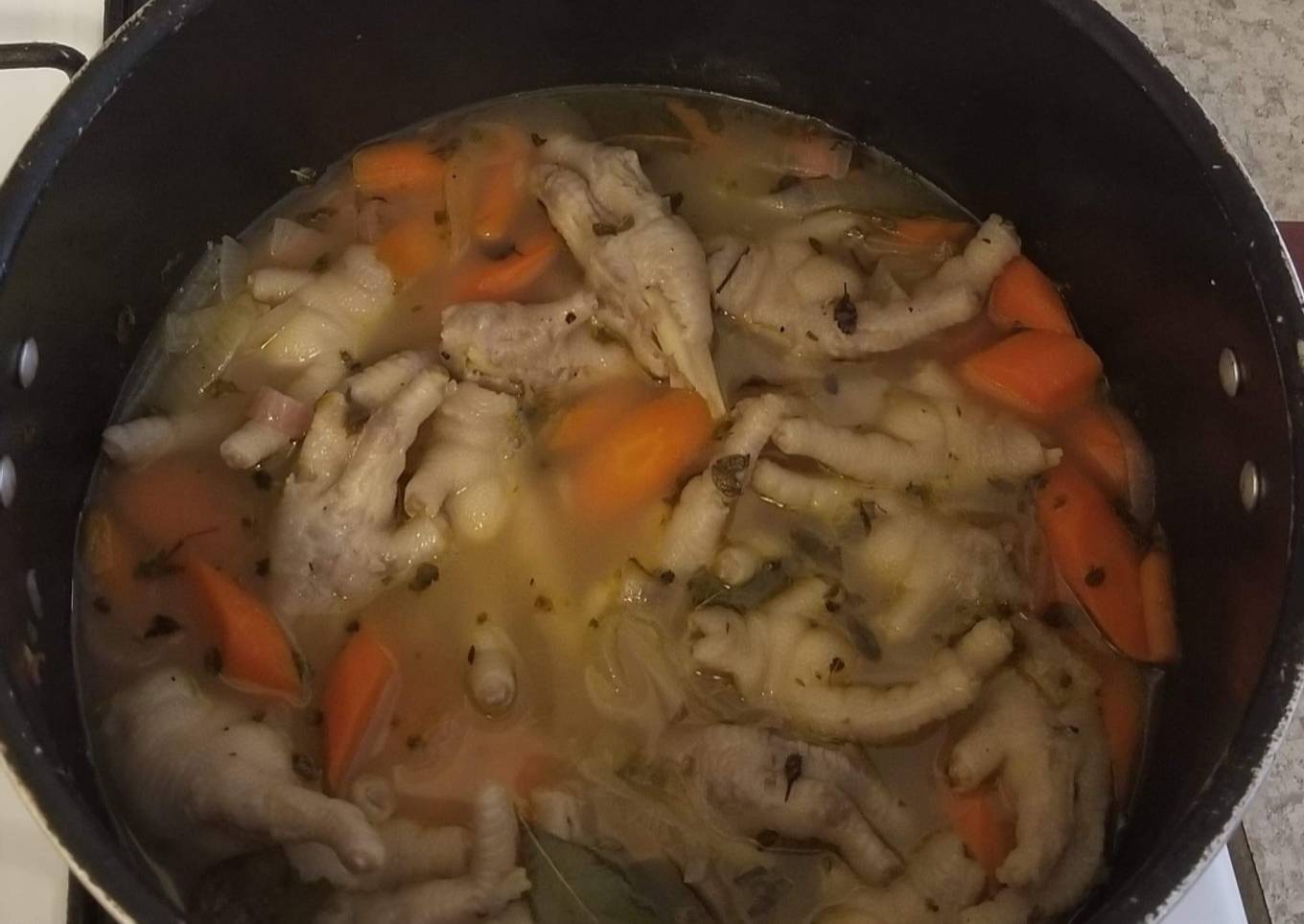- 3 tazas caldo donde herbiste las patitas de pollo